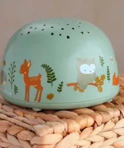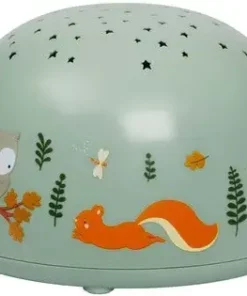 Grønn nattlampe fra A Little Lovely Company med en timerfunksjon. Denne unike lampen projiserer stjerner i taket på barnerommet. Du kan enkelt skifte mellom ulike farger på stjernene: regnbuefarger, oransje, grønn eller blå. – ABS– Batteri: 3 x AAA (ikke inkludert)– Batterier er ikke inkludert