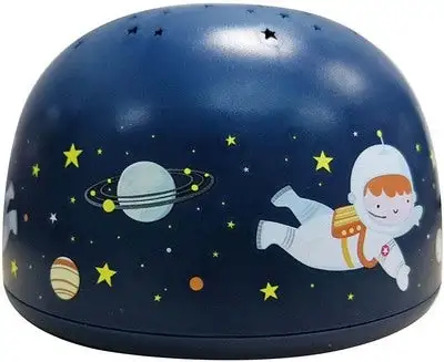 Space nattlampe fra A Little Lovely Company med en timerfunksjon. Denne unike lampen projiserer stjerner i taket på barnerommet. Du kan enkelt skifte mellom ulike farger på stjernene: regnbuefarger, oransje, grønn eller blå. – ABS– Batteri: 3 x AAA (ikke inkludert)– Batterier er ikke inkludert