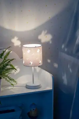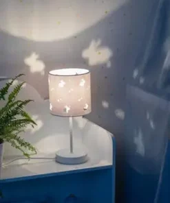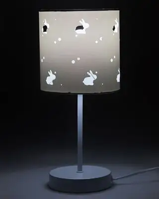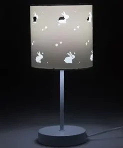 En fin bordlampe med ledning fra Alice & Fox. Lampeskjermen har et motiv av kaniner, og gir et behagelig lys i rommet. Passer perfekt som en fin detalj på barnerommet!OBS! Lyspære inngår ikke.