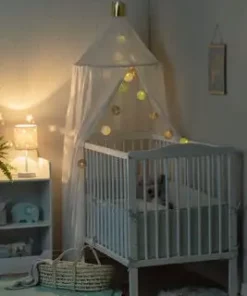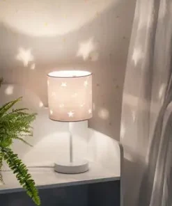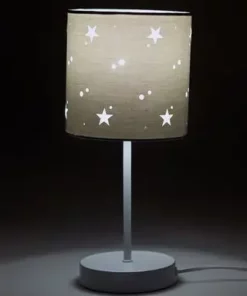 En fin bordlampe med ledning fra Alice & Fox. Lampeskjermen har et motiv av stjerner, og gir et behagelig lys i rommet. Passer perfekt som en fin detalj på barnerommet!OBS! Lyspære inngår ikke.