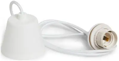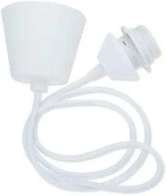 En enkel hvit lampeledning i innplastet tekstil. Ledningen passer perfekt til Alice & Fox stilige taklamper. Opphengeren har en praktisk kopp så det hele ser fint ut. OBS! Kun sukkerbit – stikkontakt inngå rikke. Sokkel: E27, Maks 40W.Mål: L120 cm.