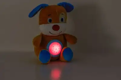 En koselig nattlampe, formet som en brun hund, fra Alice & Fox. Denne lampen skaper en fredelig stemning. Den blir en trygg venn under natten, med sitt myke lys og rolige musikk. Den er også en nydelig interiørdetalj på barnerommet!