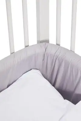 Denne Alice & Fox sengekanten er en myk sengekant i en tykkere modell som gjør at barnet beskyttes skikkelig fra sengens harde overflater og kanter, samt holder ben og armer på innsiden av sengen. En sengekant er både praktisk og sikker for barnet samtidig som den er en dekorativ innredningsdetalj. Oeko-Tex Klasse 1 – sertifisert.Mål: H 30 x L 350 cm, tykkelse cirka 3 cm passer sprinkelsenger med mål på 60 x 120 cm.Materiale:Yttertøy: 100 % bomull (Percale).Fyll: 100 % polyester.Oeko-Tex Klasse 1 – sertifisert.Vask: avtagbart trekk, maskinvask 40°C.Farge: Grå.