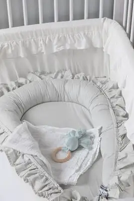 Alice and Fox sengekant, med fine volanger. En myk sengekant til sprinkelsengen, i en herlig design. Med denne er barnet beskyttet mot sengens harde sprinkler og kanter, i tillegg til at den holder ben og armer på innsiden av sengen. Sengekanten er både praktisk og trygg for barnet, samtidig som den er en dekorativ interiørdetalj. Alice & Fox sengekant holder en høy kvalitet. Laget i bomull, med en fin design som passer perfekt inn i barnerommet.