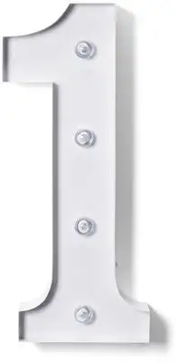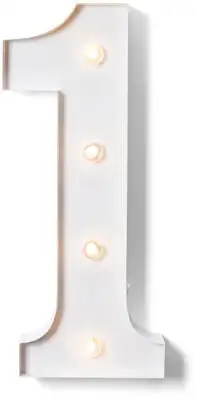 En fin lampe fra Alice & Fox, formet som sifferet 1. En morsom og fin lampe som kan kombineres sammen med noen av de andre sifrene i serien. Mål: 30 x 13 cm.Materiale: Stål.Lyspære: LED-pærer.Batterikrav: 2 stk. AA-batterier (inngår ikke).