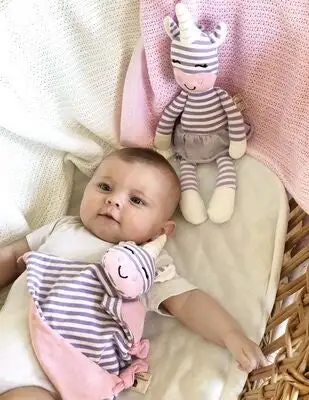 En fin sutteklut formet som en søt enhjørning fra Apple Park. Suttekluten er laget av myk, organisk bomull og har et naturlig fyll av hyperallergene maisfibre som er trygge for nyfødte og barn med allergi og sensitiv hud. Det er en rangle innvendig, de smale armene og bena er lette å gripe for små hender. En koselig venn som er perfekt å klemme om natten!