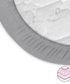 Komfortabel, rynkefri, grå Jersey Deluxe madrassbeskyttelse fra Babybay med en elastisk strikk for god passform. Den har avrundede hjørner og et holdbart, pustende materiale i bomull. – Mål: B 50 x L 89 cm. – Produktet er Oeko-Tex® 100-sertifisert, noe som sikrer at det er fritt for skadelige kjemikalier. – Vaskes på 60°C.
