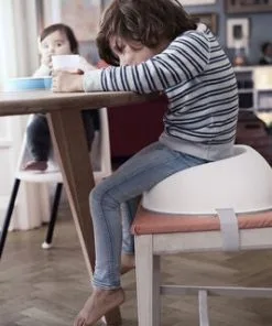 Når barnematstolen blir for liten, men matbordet fremdeles er litt for høyt, er BabyBjørns barnesete en perfekt løsning. Dette komfortable barnesetet spenner du enkelt fast på kjøkkenstolen, og det har en strukturert overfalte som gjør den enklere å sitte på. Barnesetet passer på de aller fleste vanlige stoler. Anbefalt alder: 3 år +. Mål: 35,6 x 36,8 x 14,2 cm.Materiale: plast. BPA-fri. Vask: tørk av med fuktig klut. Farge: hvit.