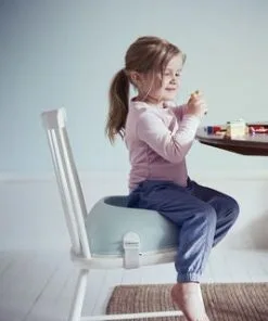 Når barnematstolen blir for liten, men matbordet fremdeles er litt for høyt, er BabyBjørns barnesete en perfekt løsning. Dette komfortable barnesetet spenner du enkelt fast på kjøkkenstolen, og det har en strukturert overfalte som gjør den enklere å sitte på. Barnesetet passer på de aller fleste vanlige stoler. Anbefalt alder: 3 år +. Mål: 35,6 x 36,8 x 14,2 cm.Materiale: plast. BPA-fri. Vask: tørk av med fuktig klut. Farge: grønn