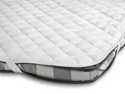 En formsydd, kviltet madrassbeskytter fra Bornganäs, perfekt til juniorsengen. Denne madrassbeskyttelsen har elastiske bånd i kantene, som gjør det enkelt å feste på hovedmadrassen. Laget av en bomullsblanding, og fylt med komfortabel polyester. Kan vaskes i maskin, uten blekemiddel.
