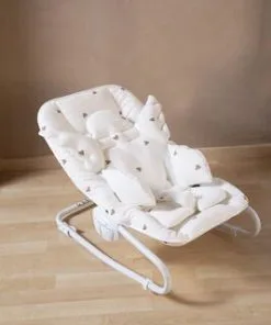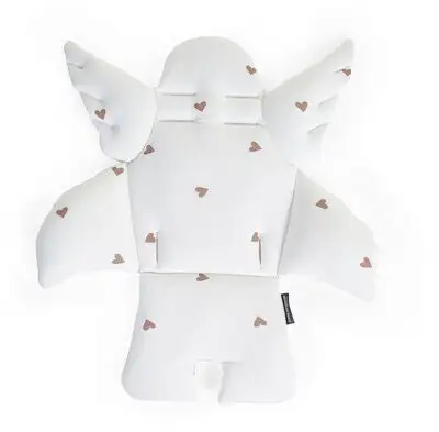 En fin pute fra Childhome som kan brukes til alle typer av matstoler og til og med i baby-stoler og barnevogner. Puten er laget i myk bomull og har et søtt mønster med hjerter. På ryggen er det hull for stolens belte.