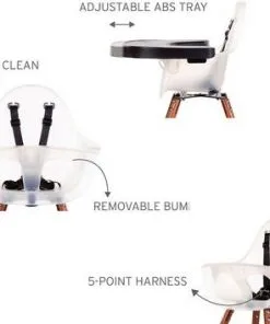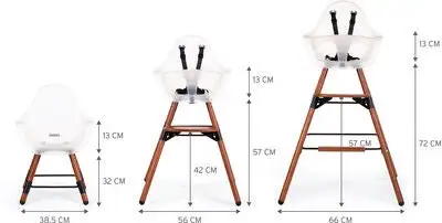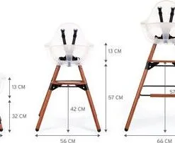 Denne trendy 2-i-1 barnestolen fra Childhome kan justeres til to bordhøyder etter hvert som barnet ditt vokser. Den har en posisjon for standard spisebord på 75 cm, samt en som er egnet for barnebord på 50 cm. Du kan også velge å ha et matbrett og en bøyle montert på stolen. Spisestolen har et fempunktsbelte og en avtakbar bøyle, for å maksimere barnets sikkerhet.Mål: 56 x 56 x 92 cm.