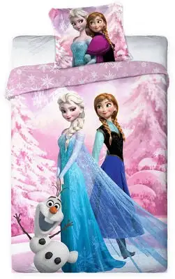 Et kult sengesett i myk bomull, beregnet for juniorseng eller enkeltseng. Sengetøyet har et fint Disney Frost-motiv, og er så klart Oeko-Tex Standard 100-sertifisert.