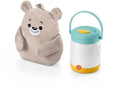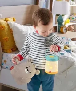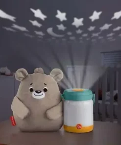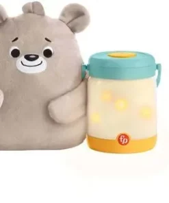 Denne søte 3-i-1-soother fra Fisher-Price forestiller en søt bjørn med ildfluer. Bruk leketøyet som en nattlampe som spiller musikk og lyser for å roe ned babyen din når det er sovetid. Etterhvert som barnet ditt vokser kan den brukes som et kosedyr, samt en nattlampe som er lett å bære med seg og kan koses med i sengen. Lampen kan blinke mykt, eller projisere en stjernehimmel i taket. Du kan velge mellom å spille av lyder fra en spilleliste eller beroligende lyder.Anbefalt alder: Fra 0 år.