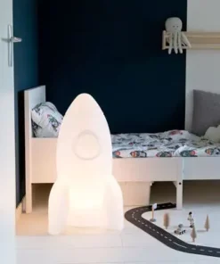 Apollo er en stor gulvlampe til barnerommet, fra Flow. Denne store lampen er formet som en romrakett, og slås av og på ved hjelp av en fotbryter. Det harde skallet gjør at den er sikker for barna å leke med. Lampen drives med strømkabel.