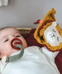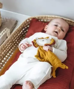 En myk og koselig sutteklut og dukke i ett, fra Kikadu. Dukken er formet som en løve, og har en leken design. Det myke musselintøyet inngir en følelse av trygghet, og de små knutene i endene, er fine å holde i for små hender. Spilledåsen er laget av økologisk bomull, og er GOTS-sertifisert. Anbefalt alder: fra 0 mnd.