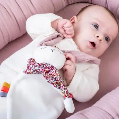 Denne suttedukken blir en trygghet og venn for barnet, i både lek og søvn, takket være sin unike design og lekne detaljer. Det myke stoffet skaper en følelse av ro, sikkerhet og gjenkjennelse som hjelper barnet med å sovne.
