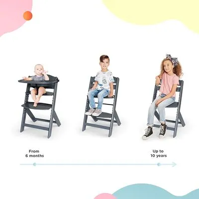 Enock er en trygg og stabil 3-i-1-matstol i stilrent design, fra Kinderkraft. Denne praktiske stolen er laget i robust og bærekraftig tre, og vokser i takt med barnet ditt da den kan brukes både som barnematstol og vanlig stol. De yngre barna sitter trygt og behagelig i stolen ved hjelp av trepunktsbeltet, og har god plass til å spise på den brede platen. Setet kan justeres i høyden, og fotstøtten kan også justeres i posisjoner eller tas helt bort, for å best mulig tilpasses små og store barn. Både beltet og spiseplaten er avtagbare slik at eldre barn kan sitte behagelig i stolen. Matstolens lette vekt (6 kg) gjør at den enkelt kan flyttes mellom ulike rom i huset. Den høye stolen passer til barn mellom 6 måneder og 3 år, og den lave stolen passer barn mellom 3 og 10 år.Med denne matstolen blir det mange herlige måltider!