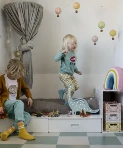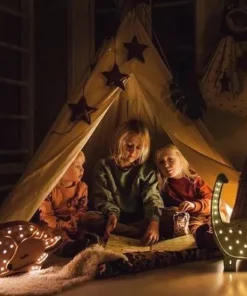 En flott, håndlaget lampe i stilig design, fra Little Lights. Lampen er laget i tre og har mange små lyspærer, som gir et koselig og stemningsfullt lys på barnerommet. Den leveres med fjernkontroll og er utstyrt med dimmer- og timerfunksjon, slik at du enkelt kan justere lysstyrken og velge tid for automatisk slukking.