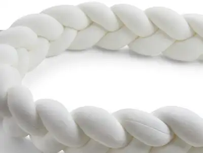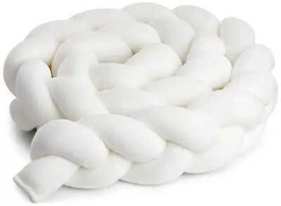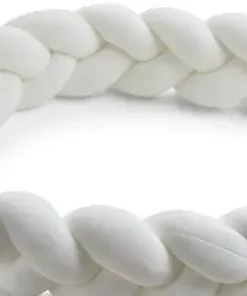 Fin, flettet, hvit sengekant fra Minitude. Denne praktiske sengekanten beskytter barnet ditt mot sengens harde kanter og forhindrer at armer og ben havner mellom sprinklene. Perfekt om natten. – Anbefalt alder: fra nyfødt