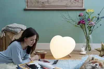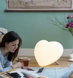 Lampen LIA fra Mr Maria. En fin hjerteformet lampe å ha på barnerommet, eller i et av de andre rommene i hjemmet. Lampen er laget av hvit, holdbar og slitesterk plast. Den har en varm, myk glød, som skaper en harmonisk og koselig atmosfære i rommet. Lampen leveres med en USB-kabel med adapter. Den kan justeres i seks forskjellige trinn med en berøringsdimmer, inkludert nightmode, for å gi et behagelig lys som er tilpasset omgivelsene. Nightmode er en veldig svak glød, som kan stå på over natten. En fantastisk interiørdetalj, og en perfekt gave å gi bort til noen du er glad i!