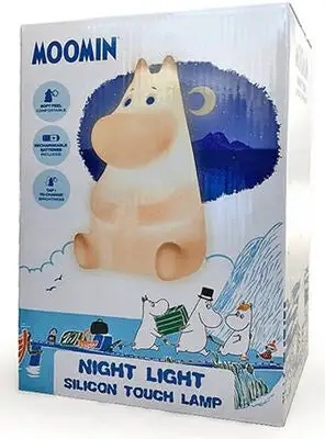 En fin LED-nattlampe fra Mummitrollet. Med en koselig nattlampe kan barnet ditt føle seg trygt når det er tid for å sove. Denne nattlampen sprer et mykt og varmt lys i soverommet. Den går på oppladbare batterier, og den kan også brukes med USB-kabel. Lysstyrken kan justeres til fem innstillinger med fjernkontrollen, eller så kan man slå lett på lampen med fingrene.