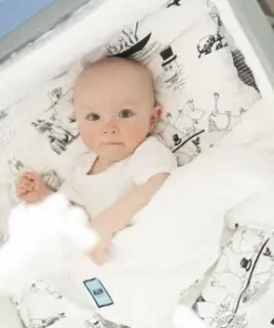 Et mykt sengesett fra Rätt Start, med fint mønster fra Mummi-verden. Perfekt til sprinkelsengen! Alle Rätt Starts sengetekstiler er økologiske, GOTS-sertifiserte og Oeko-Tex Standards 100-sertifiserte. Mål: Dynetrekk: 100 x 130 cm.Putetrekk: 40 x 45 cm.