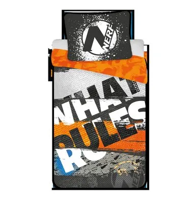 Et herlig sengesett med motiv fra Nerf. Sengetøyet er laget av 100 % myk bomull og inneholder et putetrekk og dynetrekk. Med dette sengesettet kan alle Nerf-fans sove godt!