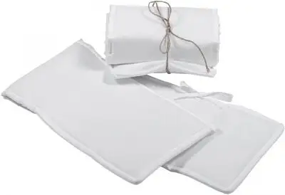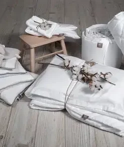 En praktisk to-delt sengekant som beskytter mot de harde kantene i babyens bedside crib, samtidig som den skaper en lun og trygg atmosfære der babyen skal sove. Sengekanten fra kvalitetsmerket NG Baby er fôret med stabilt fiberfyll og knytes enkelt fast i babysengens sprinkler.NG Baby sengekant tilsprinkelseng er laget av bomull fra sertifiserte, økologiske avlinger, der ingen bekjempningsmidler er lovlige. Tekstilene produseres under rettferdige arbeidsforhold og sosialt ansvar.- Passer til babysenger med målene 40x 90 / 40 x 89 cm.Mål lang del: 170 x 20 cm.Mål kort del: 90 x 20 cm.Materiale: 100% økologisk bomullssateng. GOTS-sertifisert.Fôr: 100% resirkulert polyester.Vaskeanvisning: Maskinvask 40°C. Strekkes i våt tilstand.Farge: hvit.