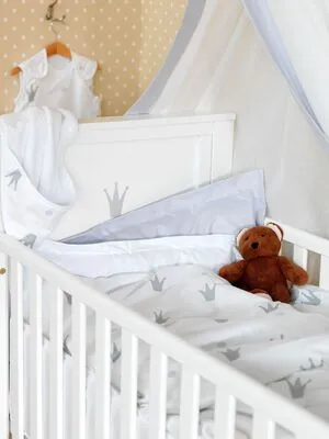 NG Baby Sengesett Royal V/V Hvit/Grå er et herlig, mykt og svalt sengesett. Mål dynetrekk: 70 x 80 cm.Mål putevar: 28 x 35 cm.Materiale: 100 % bomull.Farge: Hvit/Grå.