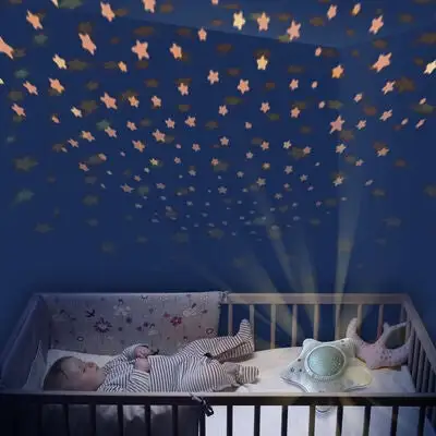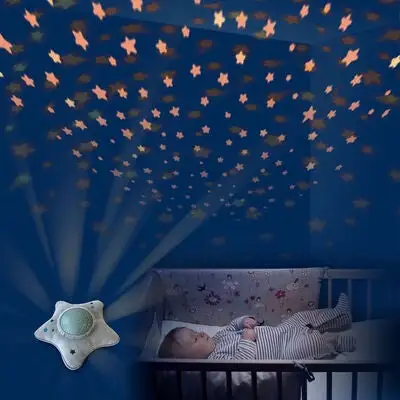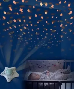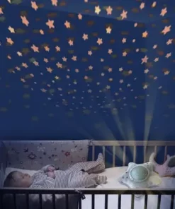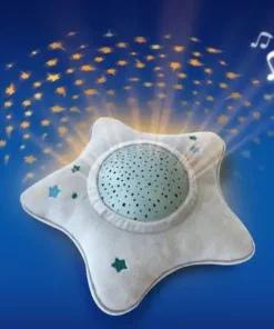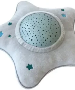 En myk og herlig nattampe/projektor fra klassikeren Pabobo. Denne nattlampa spiller vuggeviser for barnet ditt og projiserer en vakker stjernehimmel i taket. Den innovatie nattlampen har tre forskjellige programmer som hjelper barnet ditt med å sovne, med hjelp av musikk og beroligende lyder. Programmet Baby Cry Sensor setter i gang om barnet ditt våkner om natten, og spiller da berolgiende lyder. Det myke trekket på lampen kan tas av og vaskes i maskin på 30°C.- Projiserer en stjernehimmel som beveger seg langsomt over taket. – Slår seg av automatisk.- LED-lys som ikke blir varmt. – Ulike programmer for rolige og rastløse barn. Mål: 27 x 27 x 11 cm.Batterikrav: 3stk. AA-batterier.Materiale: ABS-plast, polyester.