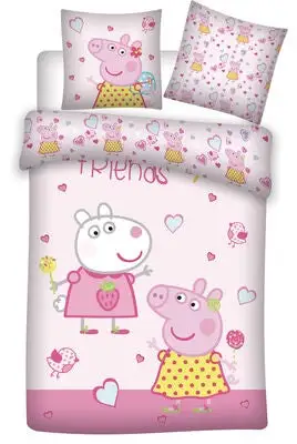 Et fint og fargerikt sengesett med fint motiv inspirert av den populære barneserien Peppa Gris. Settet er laget av myk bomull, og inneholder et dynetrekk og et putevar.