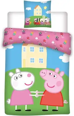 Sengesett med dyne- og putetrekk, fra Peppa Gris. Sengetøyet er laget i myk bomull, som er behagelig å sove i. Det har et nydelig designet motiv med inspirasjon fra TV-serien.Produktet er Oeko-Tex Standard 100-sertifisert, noe som sikrer at det er helt fritt for skadelige kjemikalier.