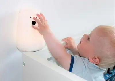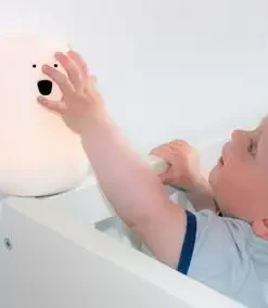 En kjempesøt nattlampe fra Rabbit & Friends som ser ut som en søt bjørn. Lampen kan stilles inn til 7 ulike farger. En koselig lampe som gir et behagelig lys i rommet.