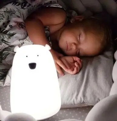 En kjempesøt nattlampe fra Rabbit & Friends som ser ut som en søt bjørn. Lampen lades via en USB-kabel. Lampen kan stilles inn til 7 ulike farger. En koselig lampe som gir et behagelig lys i rommet.