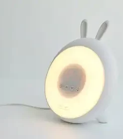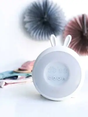 Wake Up er en praktisk lampe fra Rabbit & Friends, som gir barnet ditt en god start på dagen! Lampen hjelper barnet med å våkne på en bedre og mer forsiktig måte, med en behagelig glød som ligner dagslys.Lampen begynner å lyse 30 minutter før alarmen settes i gang, og lyser mer og mer intensivt. Når det er 15 minutter igjen til vekking, starter alarmlyden med 50% lydnivå, som blir høyere og høyere fram til barnet våkner.Wake Up-lampen er også utstyrt med funksjonen «Solnedgang», som reduserer lysskinnet litt og litt. Perfekt for barn som har vanskelig for å sovne uten nattlampe.