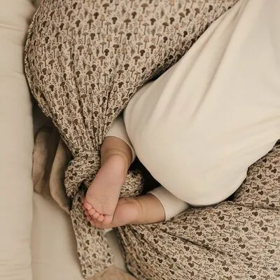 Mykt bæresjal fra That’ s Mine i bomullsmusselin. Å pakke inn babyen vil få den til å føle seg trygg, takket være den omfavnende følelsen. – Anbefalt alder: fra nyfødt. – 100 % økologisk bomull.