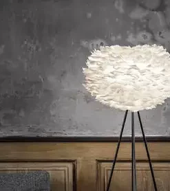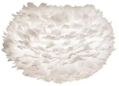 Umage (Vita) Eos Lampe Hvit 45 cm er en lampe som gir et behagelig, varmt og koselig lys. Lampen passer perfekt på barnerommet, eller i et annet rom hvor du ikke vil ha et så skarpt lys. Lampeskjermen passer både som taklampe, og til lamper med fot. Lampeskjermen består av cirka 1800 ekte fugledun (biprodukt fra næringsmiddelindustrien). For å rengjøre lampeskjermen, og for å fluffe fjærene, kan du bruke en hårtørker. Mål: Ø45 cm x H30 cm. Materiale: Gåsefjær, papir og aluminium. Lyspære: Inngår ikke, LED-pære anbefales.Obs! Pakken inneholder kun lampeskjerm. Ledning og opphengning kjøpes separat.