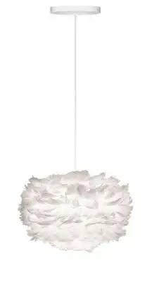 Umage (Vita) Eos Lampe Mini Hvit 35 cm er en lampe som gir et behagelig, varmt og koselig lys. Lampen passer perfekt i barnerommet eller et annet rom hvor du ikke vil ha et så skarpt lys. Lampeskjermen passer både som taklampe og på fot som en bordlampe. Lampeskjermen består av cirka 900 ekte fugledun (biprodukt fra næringsmiddelindustrien). For å rengjøre lampeskjermen og for å fluffe fjærene kan du bruke en hårtørker. Obs! Pakken inneholder kun lampeskjerm. Ledning og opphengning kjøpes separat.