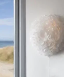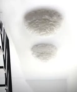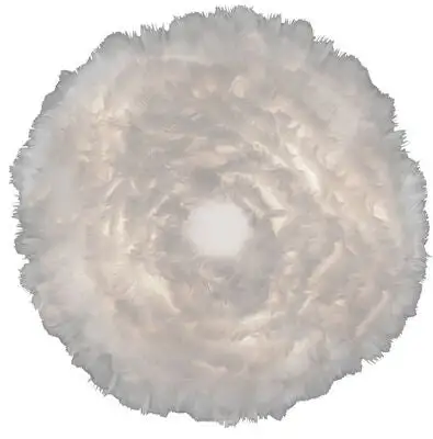 Umage (Vita) lampe Eos Up er myk og fluffy og kan settes opp på veggen eller i taket. Lampen gir et behagelig lys og passer perfekt til barnerommet. Lampeskjermen består av ekte gåsefjær (kommer ikke fra levende gås men er biprodukter fra matindustrien). For å rengjøre lampeskjermen og for å fluffe til fjærene kan man bruke en hårføner. Mål: 40 x 40 x 15 cm.Materiale: Gåsefjær, papir og aluminium.Pæretype: Inngår ikke, LED-pære anbefales. Farge: Hvit.