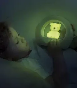 Nattlampe fra ZAZU med en stemmesensor som gjør at den slår seg på automatisk, hvis barnet ditt begynner å gråte. Den har en timerfunksjon slik at lampen automatisk slukkes når barnet har sovnet. – Både ringen og bjørnen lyser – samtidig eller hver for seg. – Lyspærene kan dimmes til ønsket lysstyrke. – Fungerer både som leselampe og nattlampe. – Anbefalt alder: fra nyfødt. – Batterier inkludert.