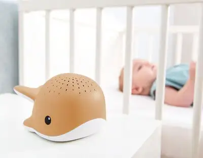 Søvntrener fra ZAZU med tre beroligende melodier: havslyder, hjerteslag og vuggeviser. Wally er både en lysprojektor og spilledåse, og kan projisere forskjelligfargede vanndråper i taket. Den stenges automatisk av etter 30 minutter og skrur seg automatisk på igjen, hvis babyen begynner å gråte. Den kan festes til vuggen eller sprinkelengen ved hjelp av borrelåsremmen. – Gråtesensor. – Automatisk avstenging. – Kan festes til vuggen eller sprinkelsengen. – Anbefalt alder: fra nyfødt. – Batteri: 3 AA (ikke inkludert).