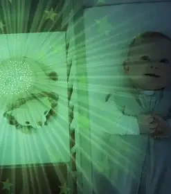 Stjerneprojektor fra ZAZU som forvandler barnets rom til en magisk stjernehimmel mens den spiller beroligende melodier. Projektoren slår seg automatisk av etter 30 minutter og musikken etter 15 minutter. Den slår seg på igjen hvis babyen begynner å gråte. – Gråtesensor. – Automatisk avstenging. – LED-lys. – Anbefalt alder: fra nyfødt. – Batteri: 3 AAA (ikke inkludert).